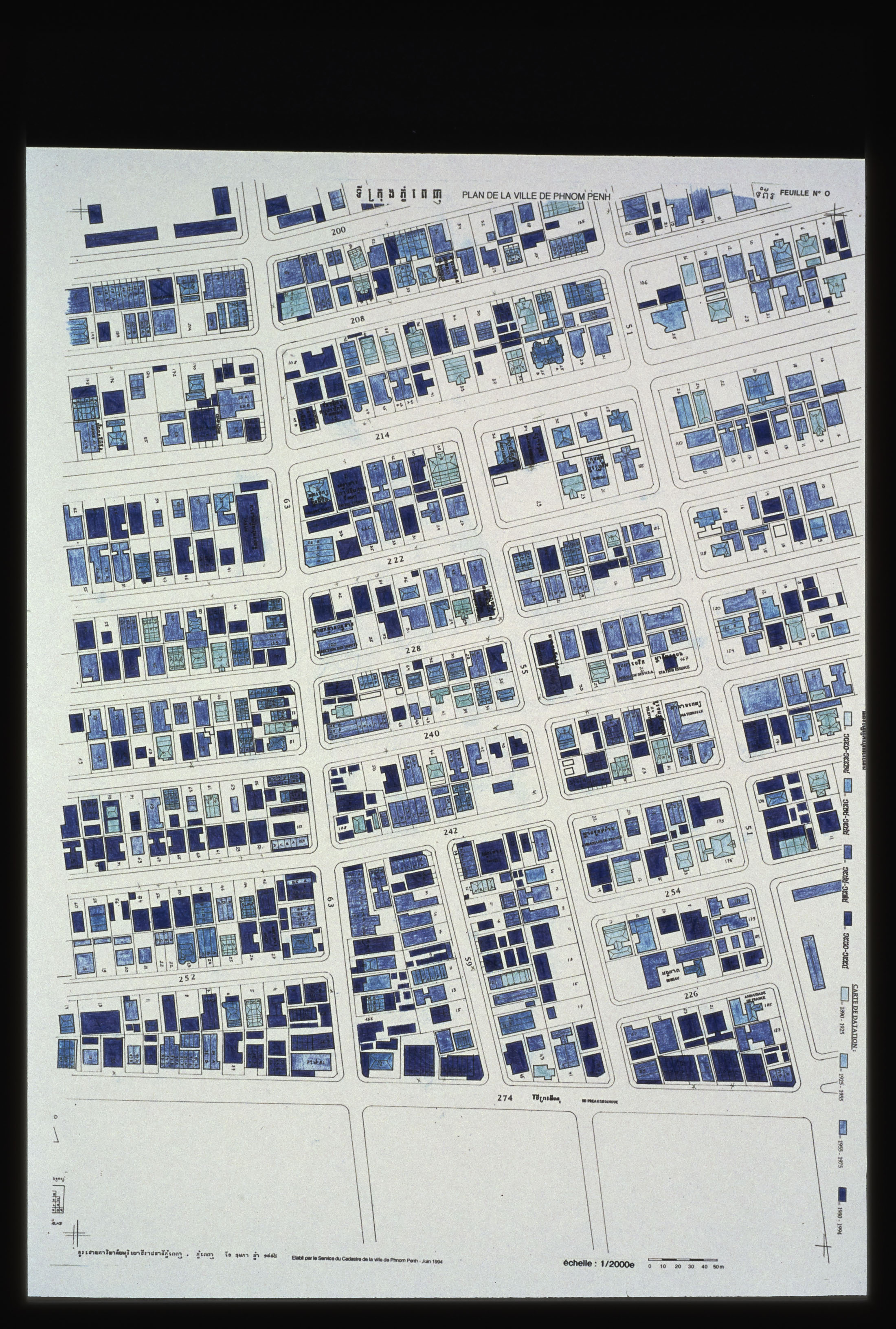 Phnom Penh, Daun Penh : carte des datations, feuille O, juin 1994