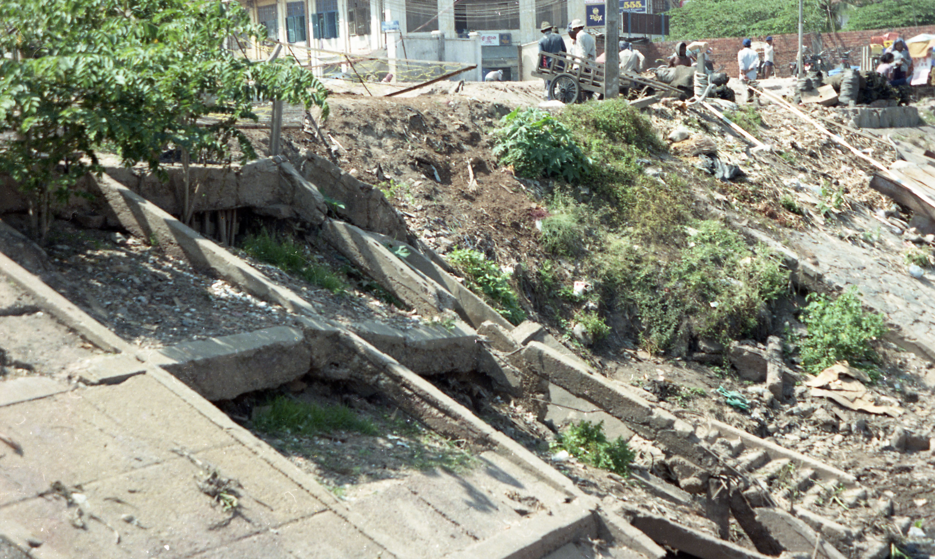 Phnom Penh : les berges en 1993 au niveau de la 2e station essence