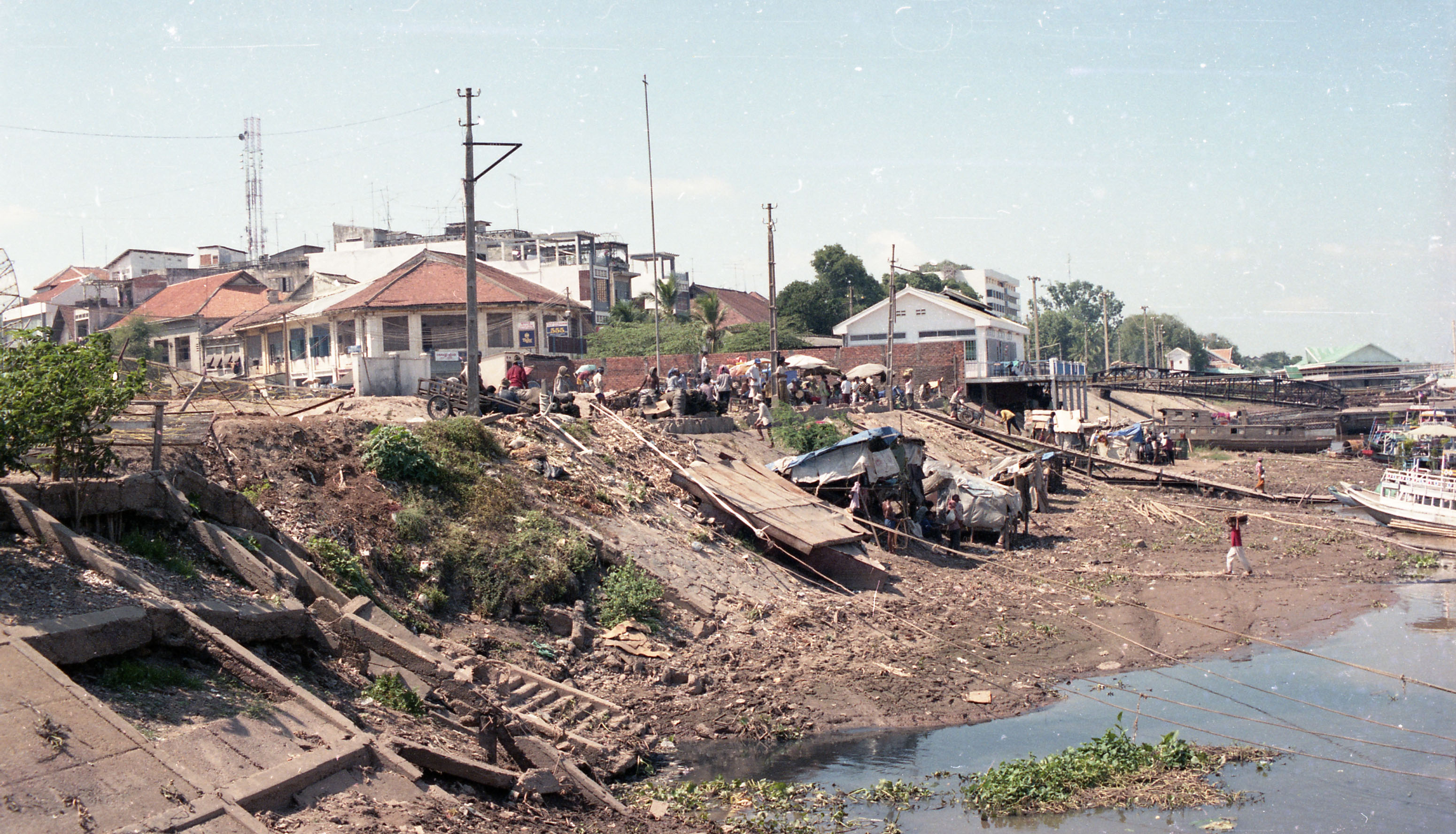 Phnom Penh : les berges en 1993 au niveau de la 2e station essence