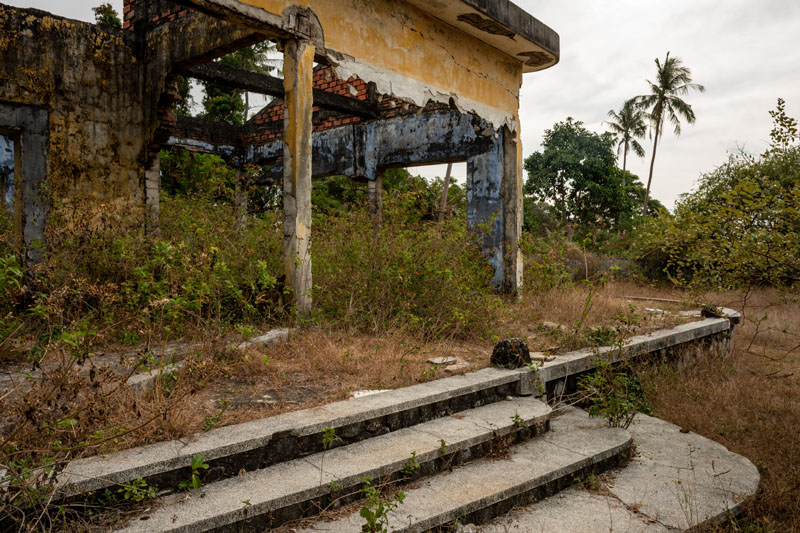 Kep-sur-Mer : nombreuses villas, malheureusement détruites ou partiellement détruites par les Khmers Rouges, témoignent du dynamisme architectural du Cambodge entre 1950 et 1970, sous l’impulsion de l'architecte Vann Molyvann