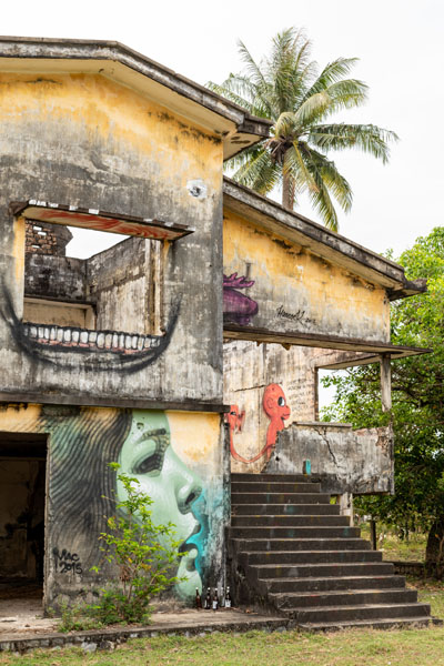 Kep-sur-Mer : nombreuses villas, malheureusement détruites ou partiellement détruites par les Khmers Rouges, témoignent du dynamisme architectural du Cambodge entre 1950 et 1970, sous l’impulsion de l'architecte Vann Molyvann