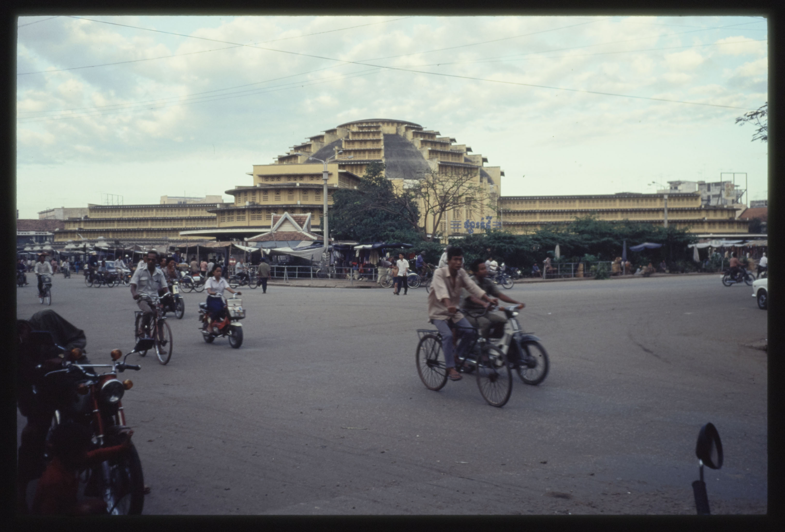 Phnom Penh - la place du Marché Central et circulation de deux roues (vélos, cyclomoteurs) en 1990 © Apur