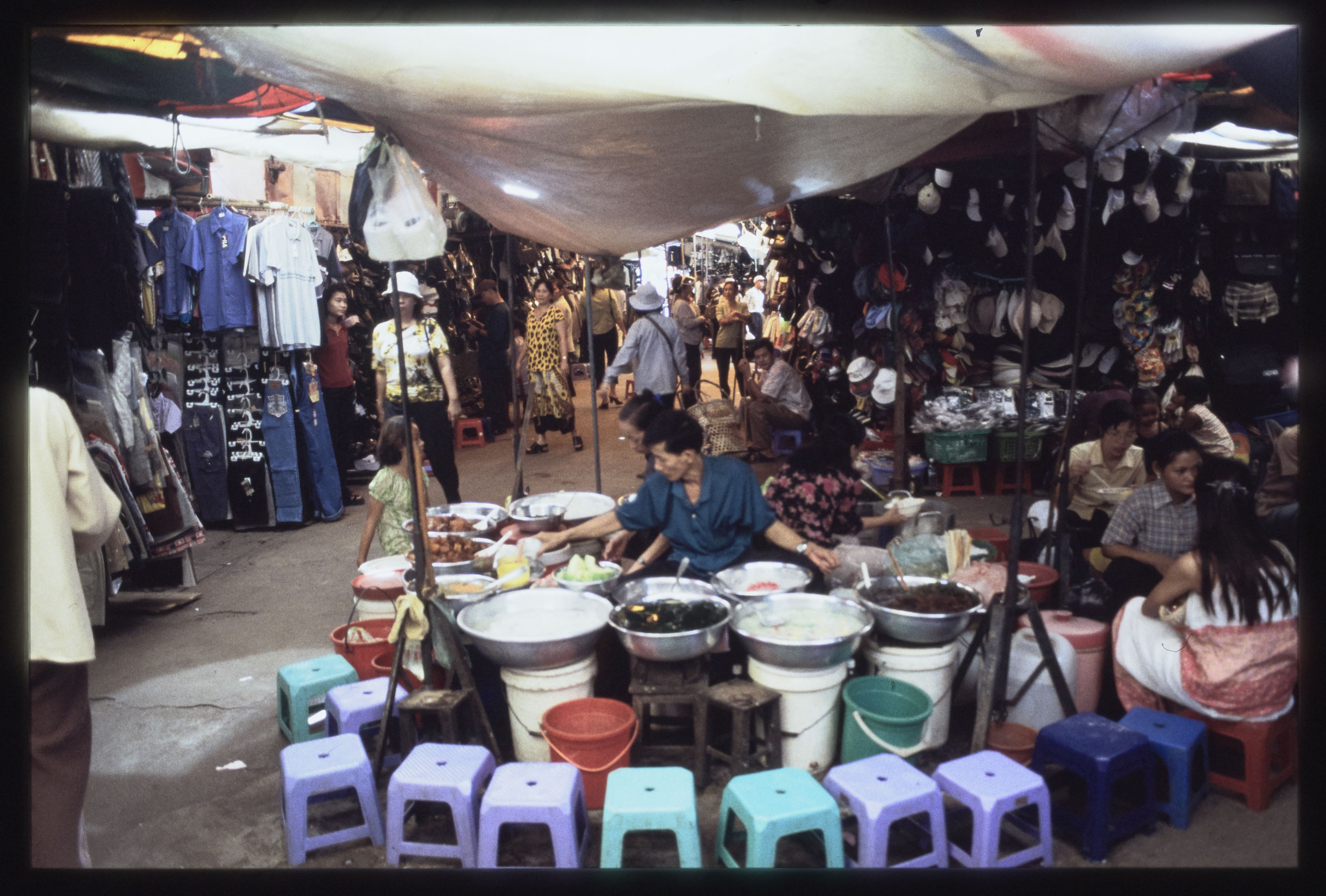 Phnom Penh : Marché Central, étalage dun marchand en 2001 © Apur