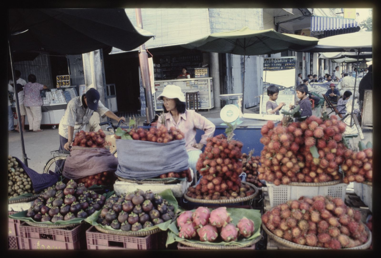 Marché Chaas (Psar Chaas) : marchande de fruits en 2001 © Apur