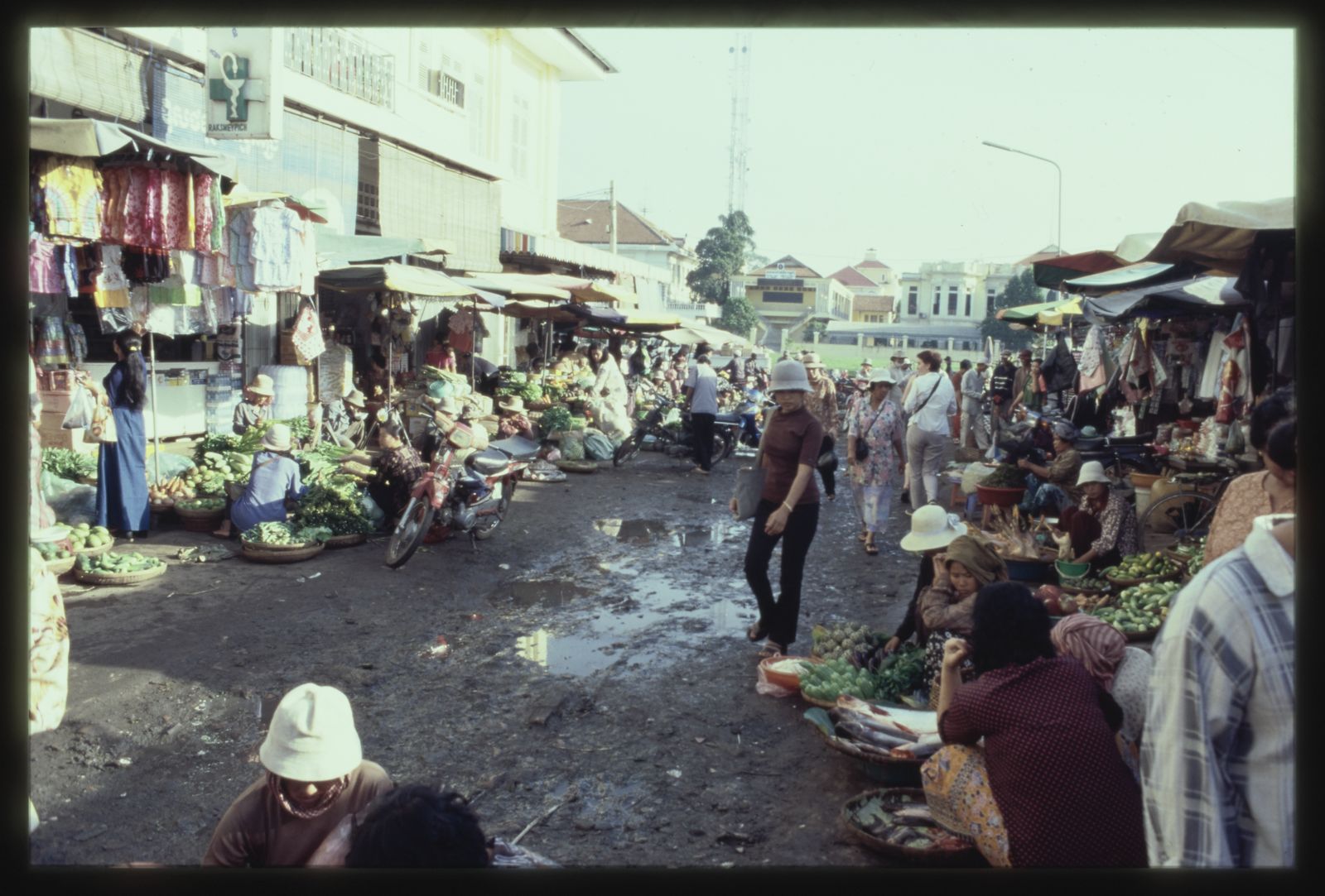 Marché Chaas (Psar Chaas) : vue des étalages en 2001 © Apur