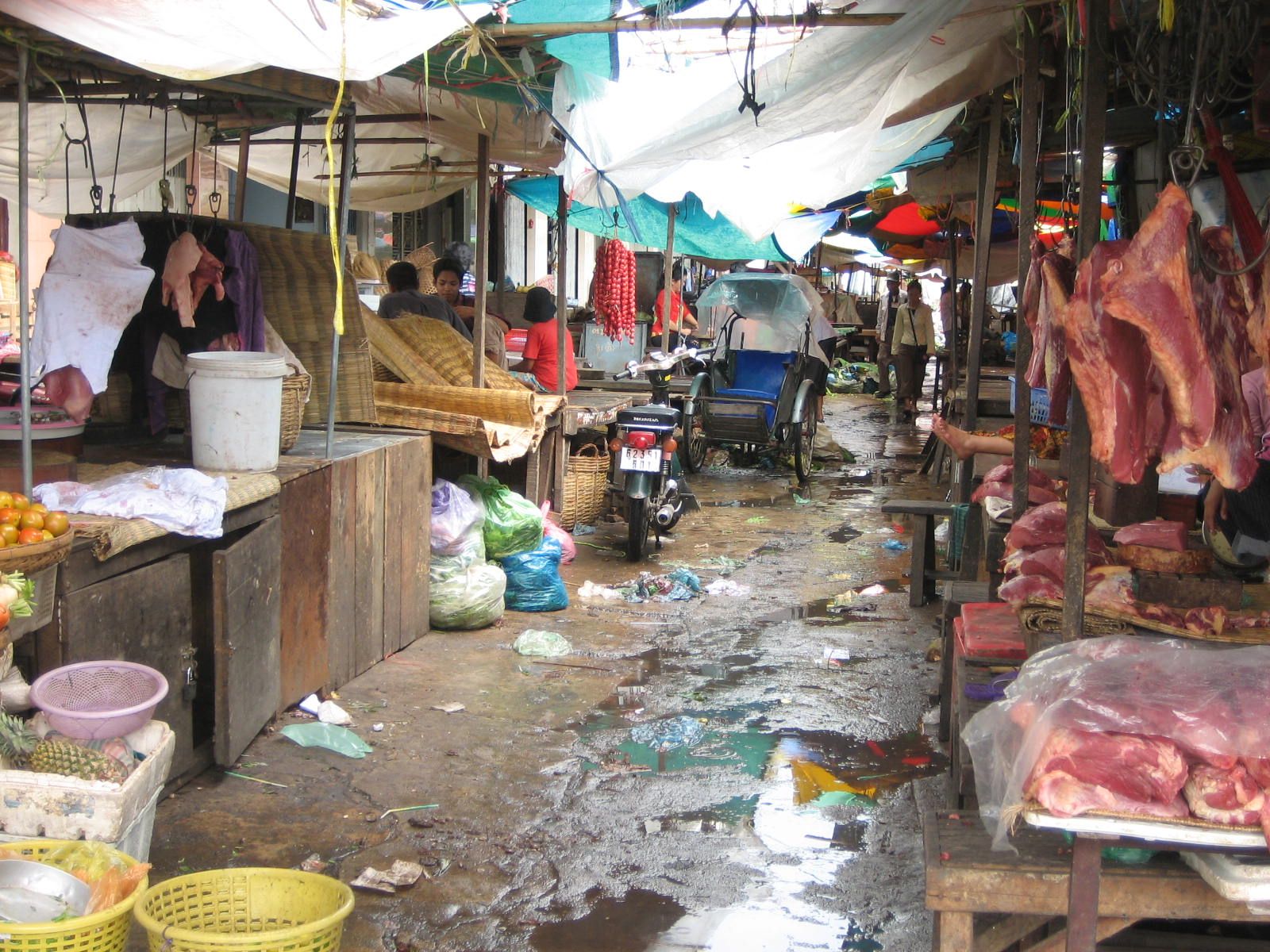 Vue intérieure du marché Kandal "Psar Kandal" et des étalages en 2006 © Apur
