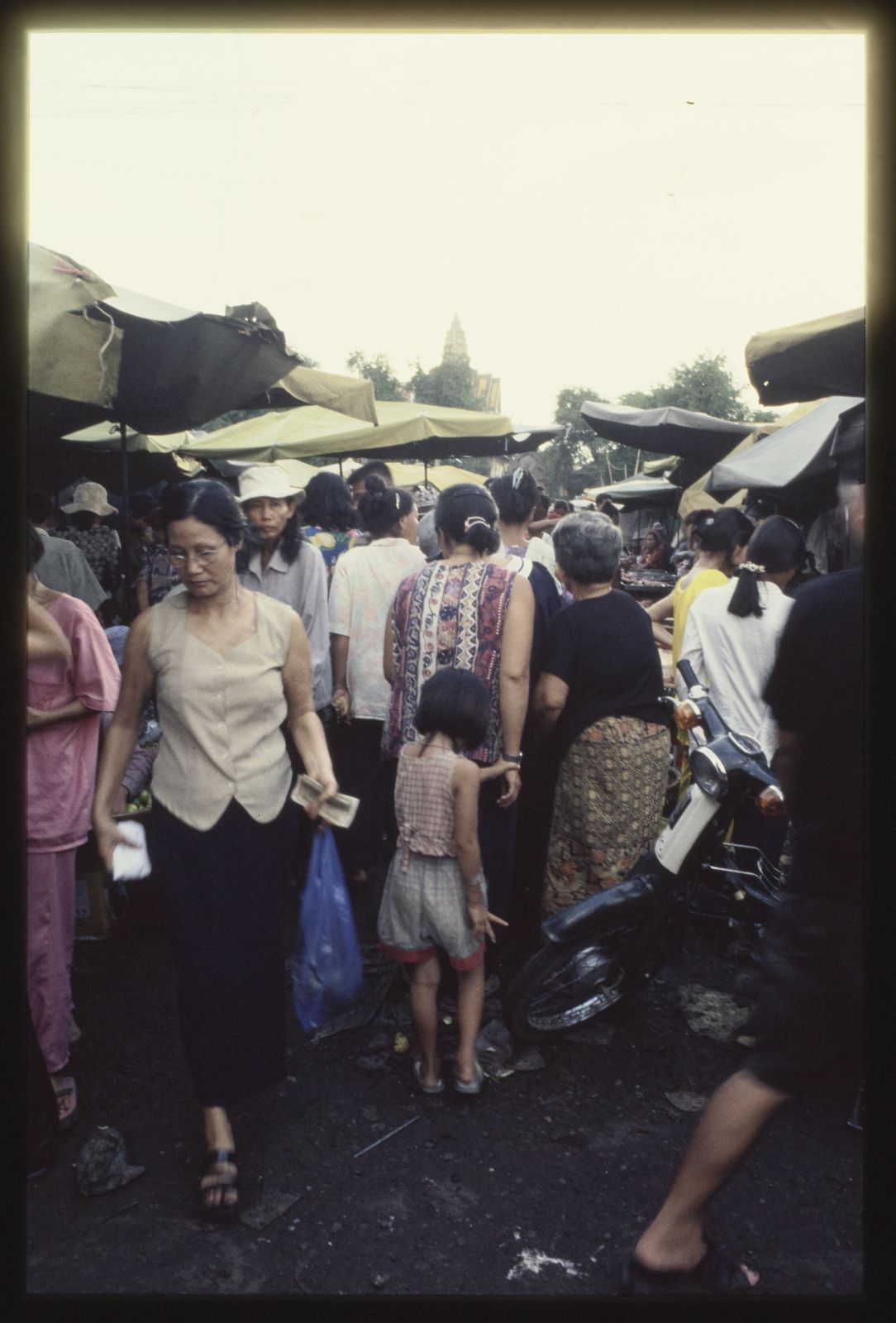Phnom Penh : marché Kandal en 2001, vue des étalages et des clients, foule compacte © Apur