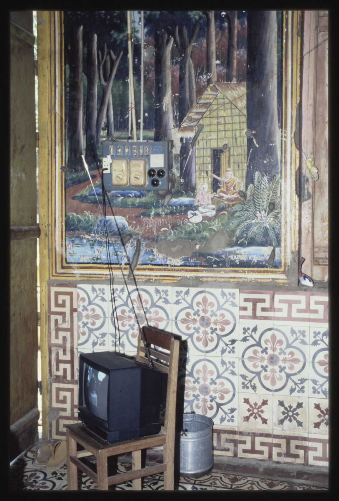 Phnom Penh - Pagode Vat Saravan : vue intérieure fresque murale en 1996 © Apur