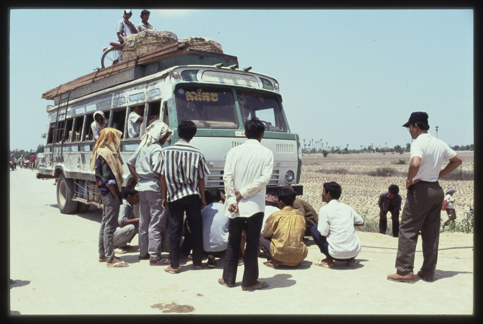 Tonlé Bati : autobus de transport de passagers en panne en 1992 © Apur