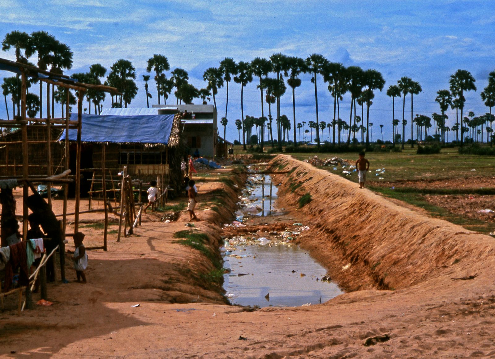 Aménagement d'un site de relogement en 2002, digue et bassin pour l'eau © Apur