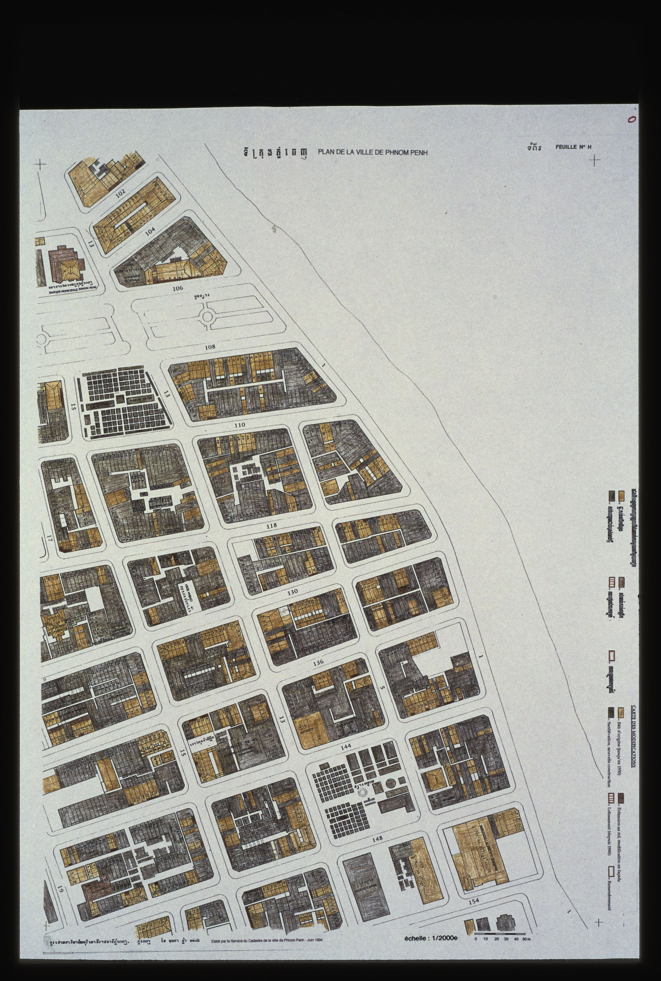 Phnom Penh, Daun Penh : Carte des modifications, juin 1994, feuille H