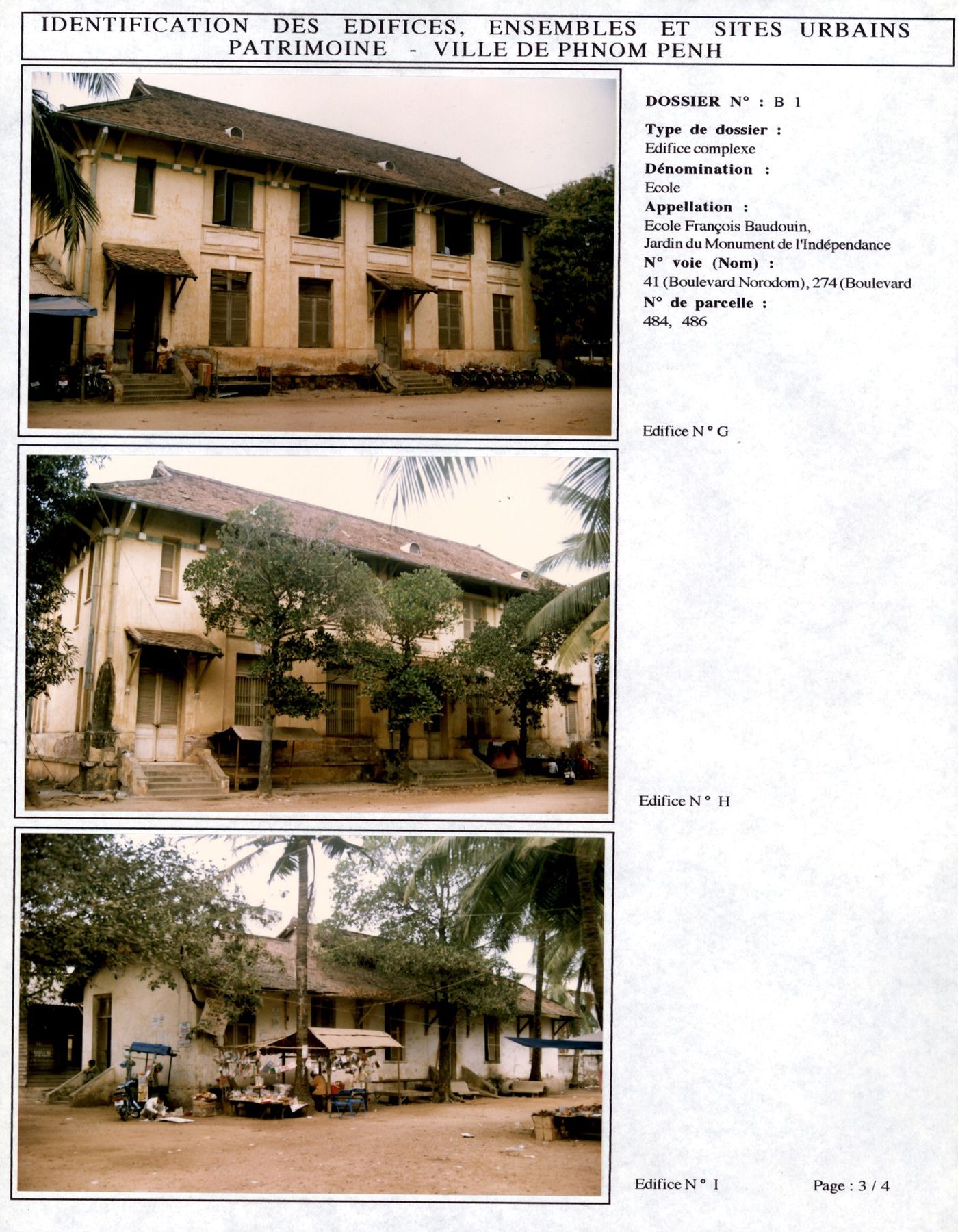 Ville de Phnom Penh : étude du patrimoine urbain - Fiches d'identification patrimoine architectural et urbain - Dossiers de B1 à B129 (secteur Khan Daun Penh) - 1993-1996